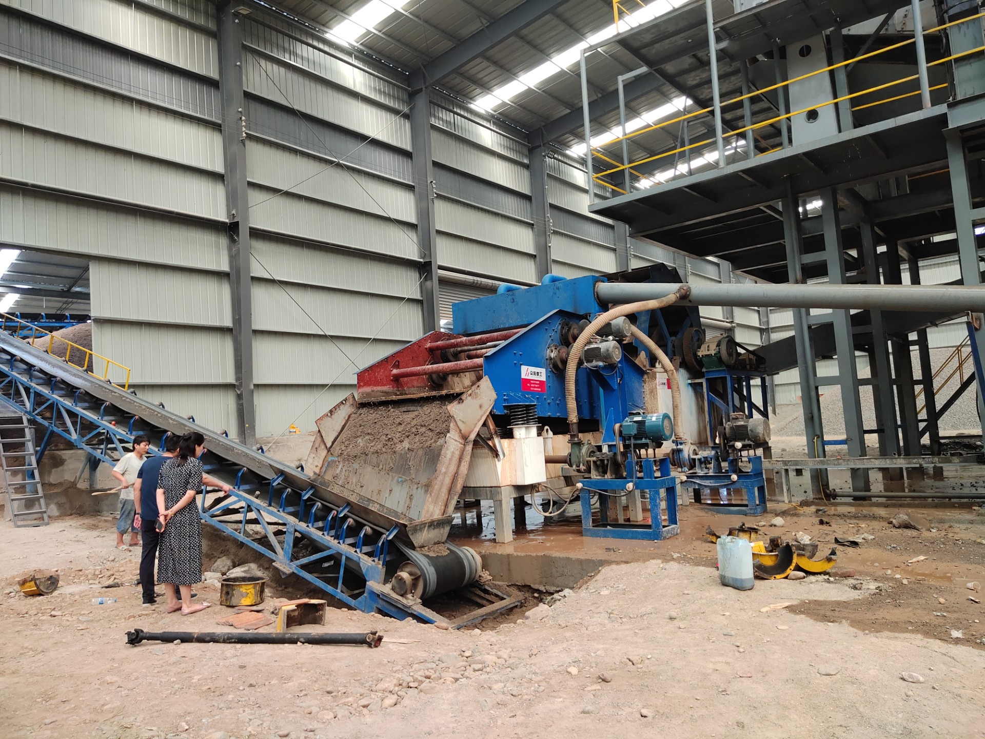 設(shè)備配置:喂料機、顎式破碎機、圓錐破碎機、振動篩、制砂機、洗砂機、污水罐