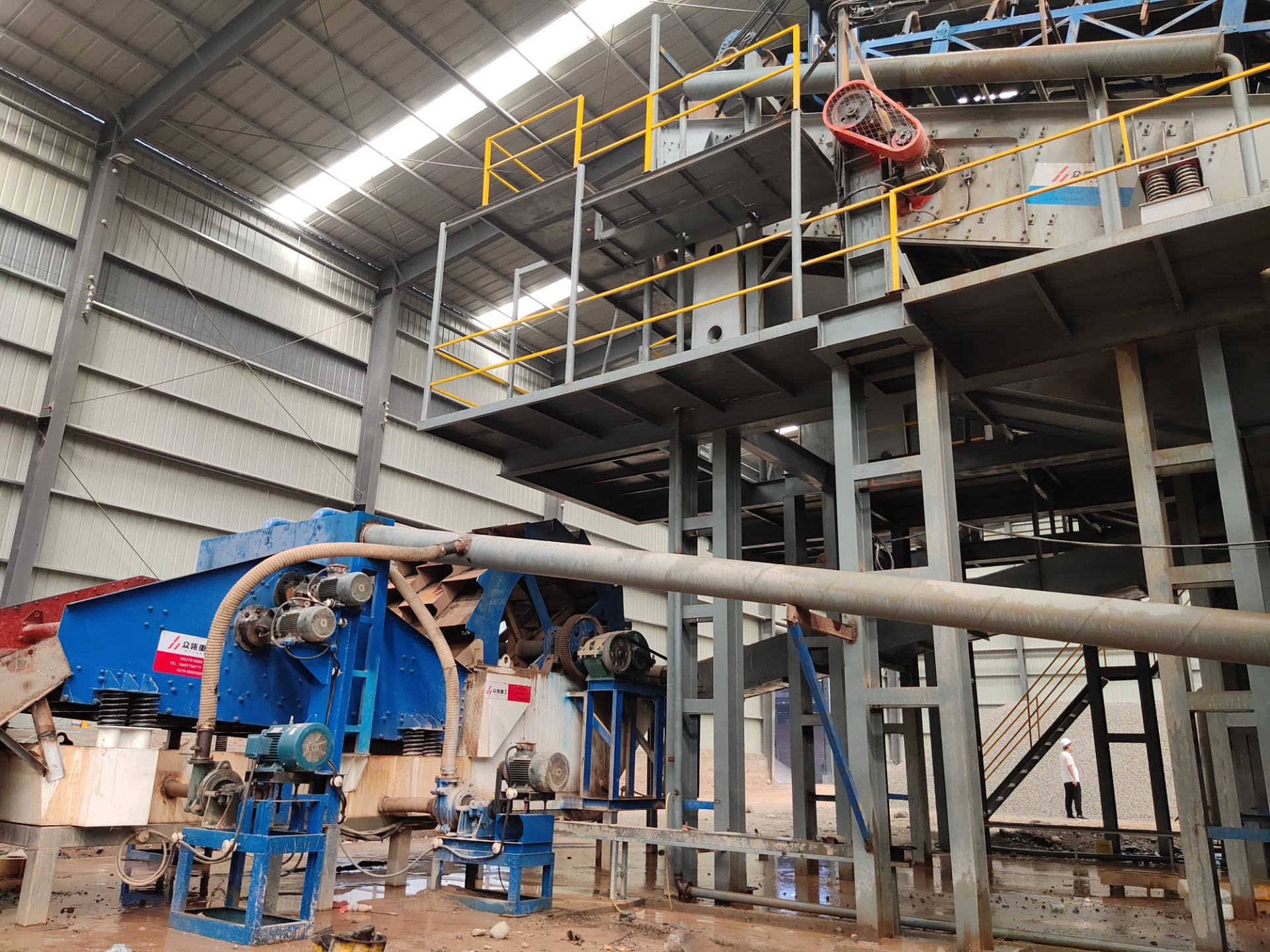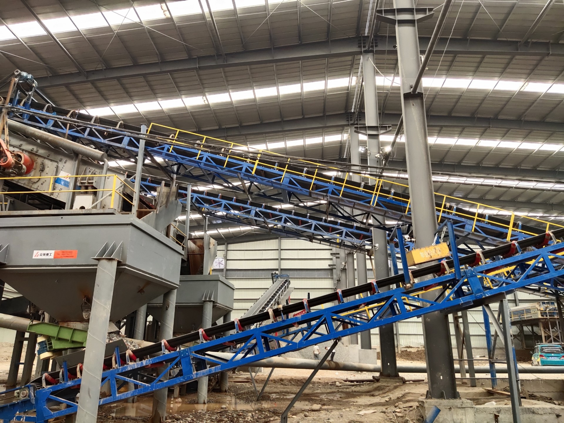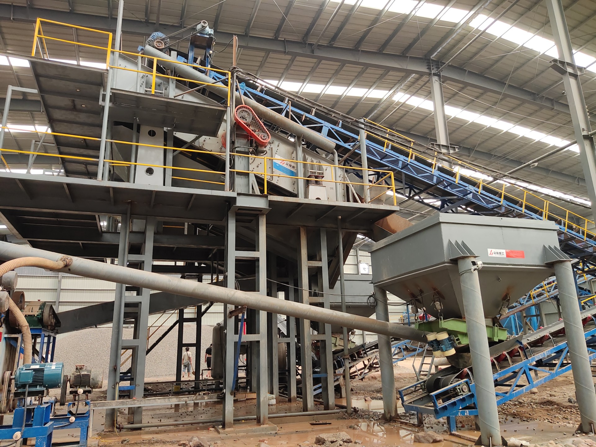 設(shè)備配置:喂料機(jī)、顎式破碎機(jī)、圓錐破碎機(jī)、振動(dòng)篩、制砂機(jī)、洗砂機(jī)、污水罐